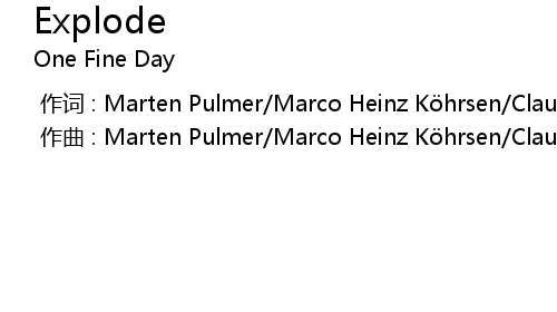 | [00:00.000] | 作曲 : Marten Pulmer/Marco Heinz Köhrsen/Claus Hendrik Burkhard |