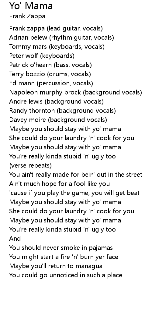 Frank zappa (lead guitar, vocals) |