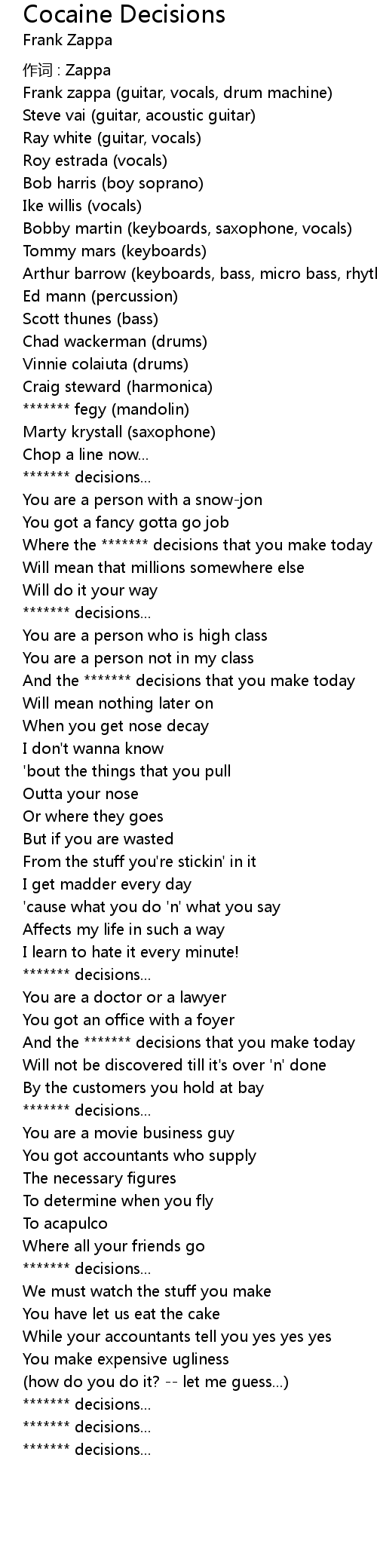 | 歌曲 | Cocaine Decisions |