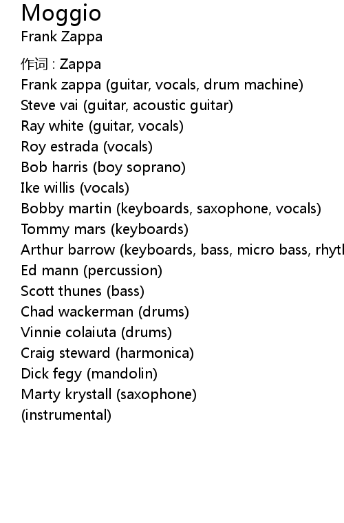 | Frank zappa guitar, vocals, drum machine | |
