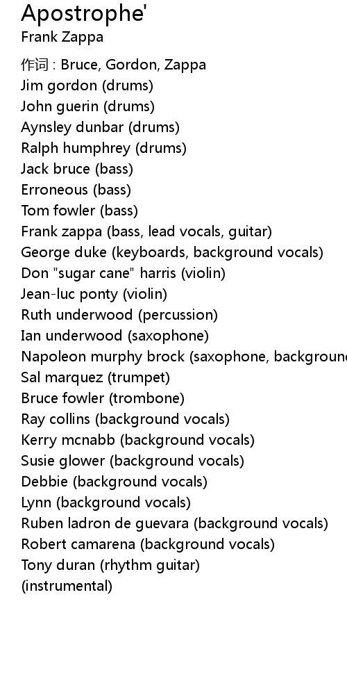 | 歌曲 | Apostrophe' |