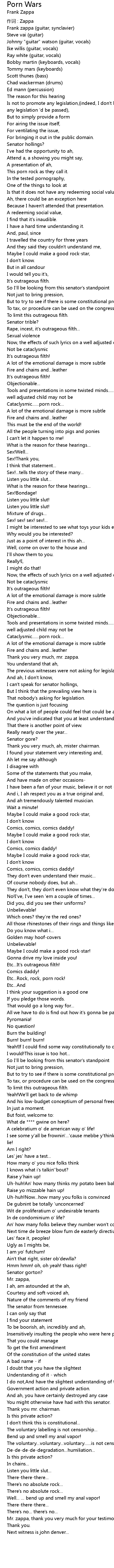 | 歌手 | Frank Zappa |