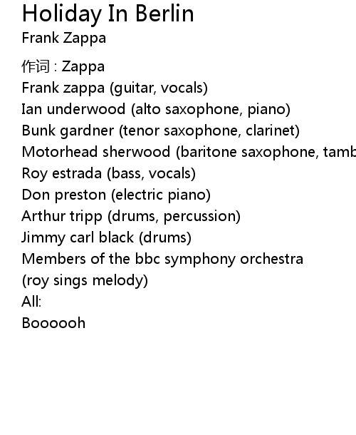 | 歌曲 | Holiday In Berlin |