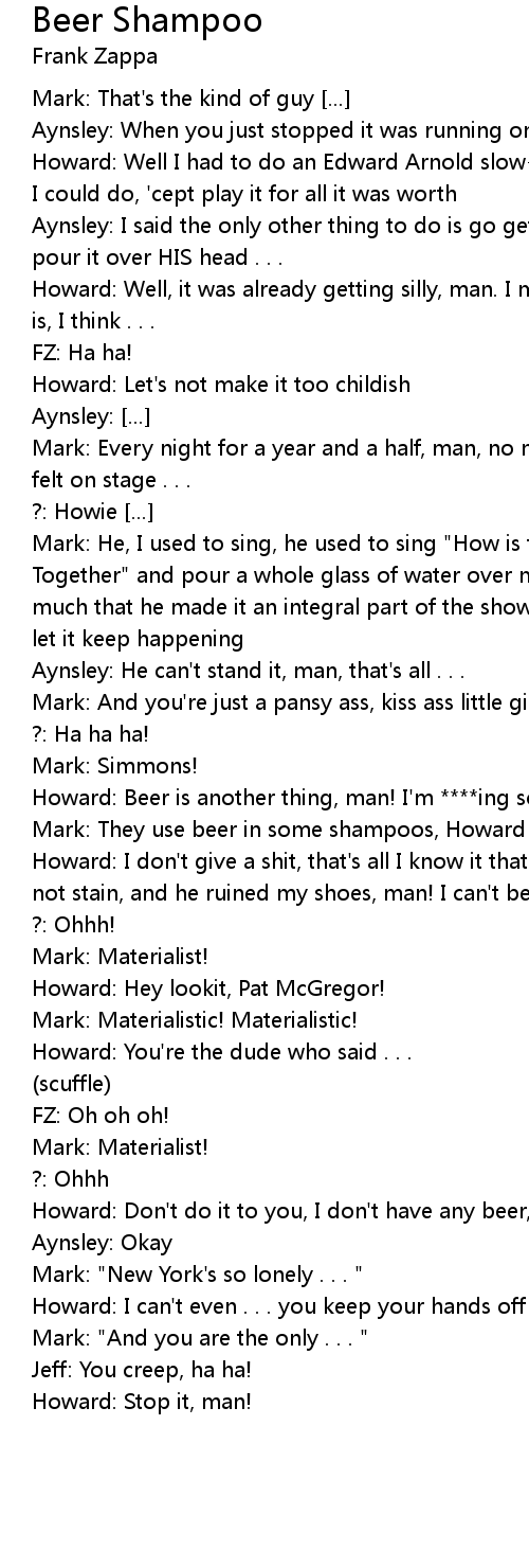 Mark: They use beer in some shampoos, Howard |