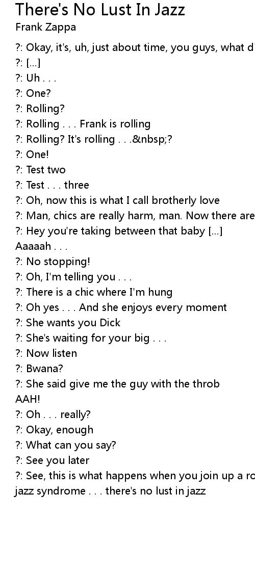 ?: See, this is what happens when you join up a rock group, George, get off that jazz syndrome . . . there's no lust in jazz |