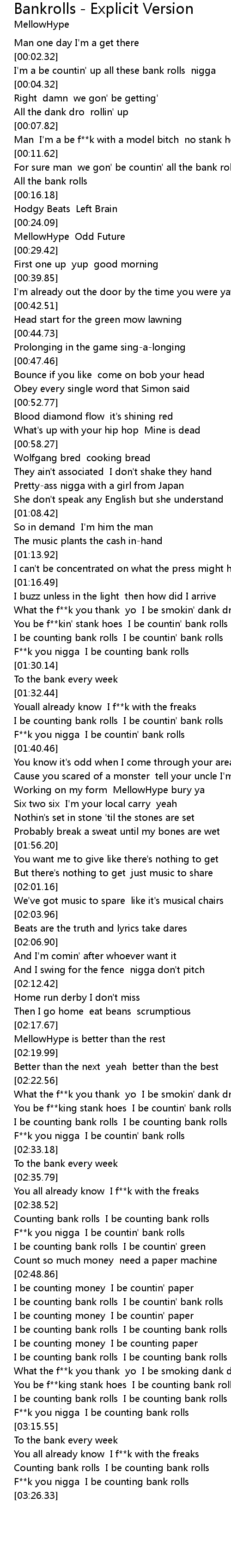 [01:38.35] F**k you nigga I be countin' bank rolls