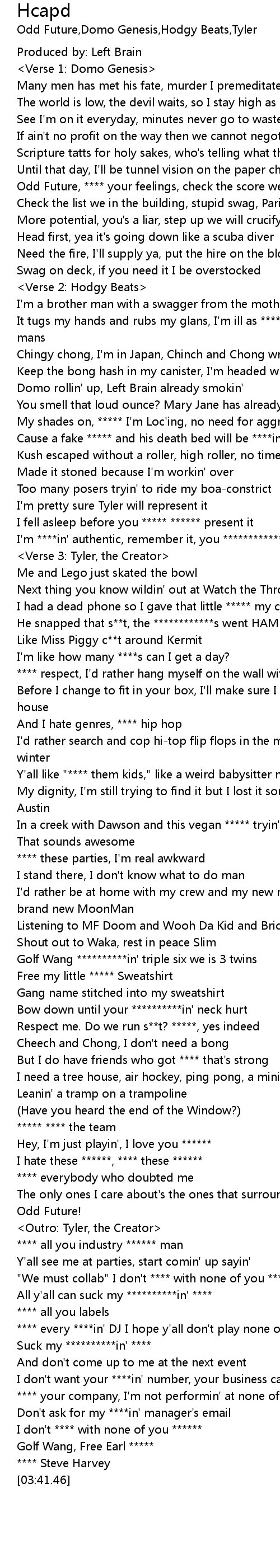 Odd Future, **** your feelings, check the score we ****in' winnin' |