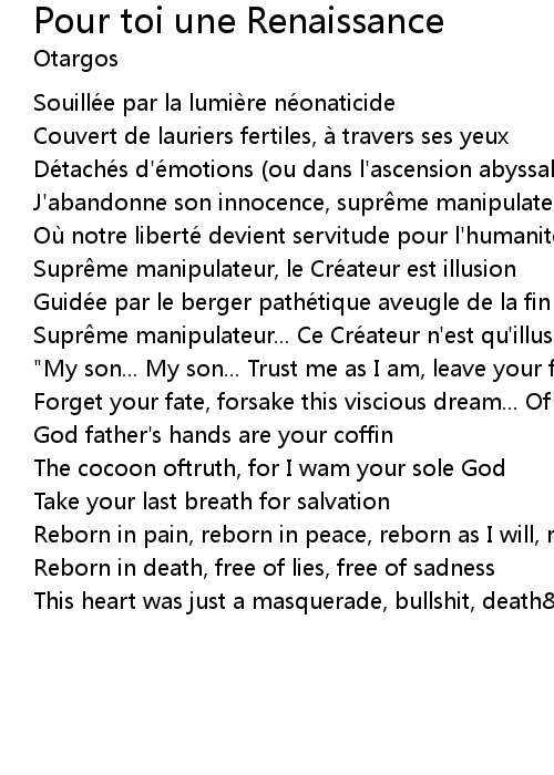 | 歌曲 | Pour toi une Renaissance |