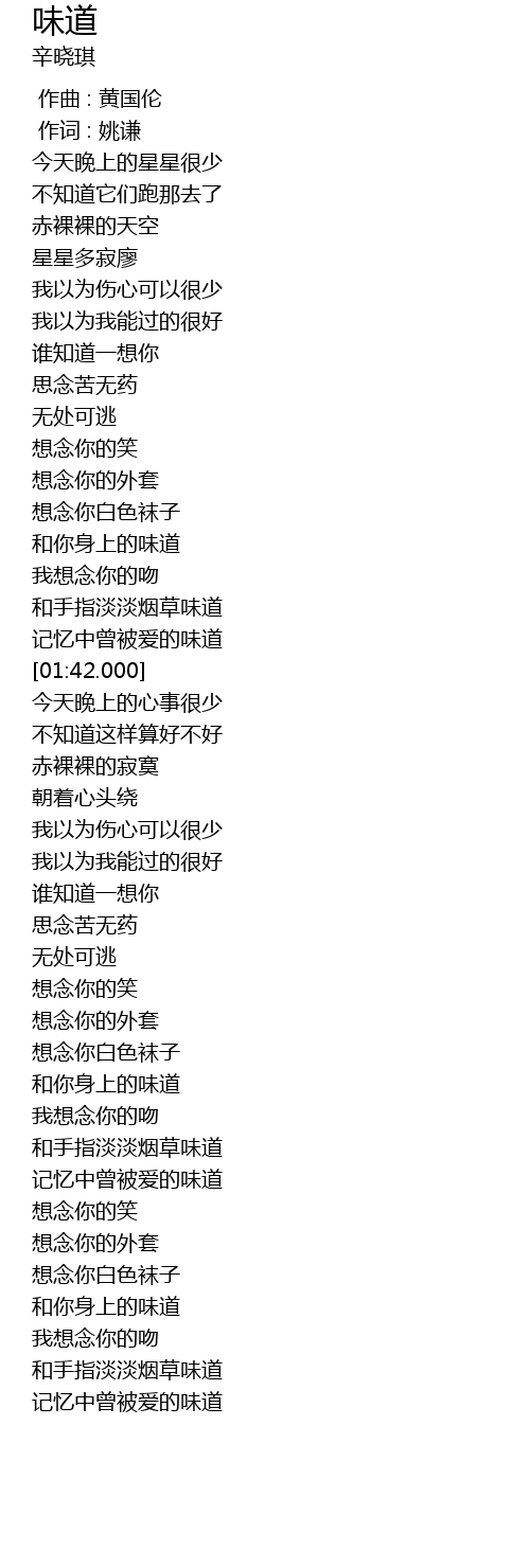 | [02:58.000] | 和手指淡淡烟草味道 |