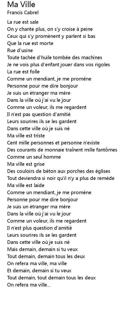 | Dans la ville ou j' ai vu le jour | |