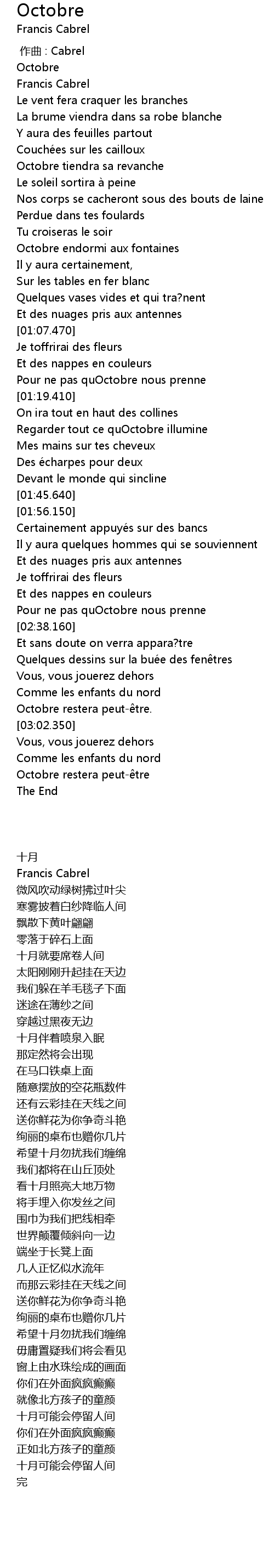 | [00:00.900] | Octobre |
