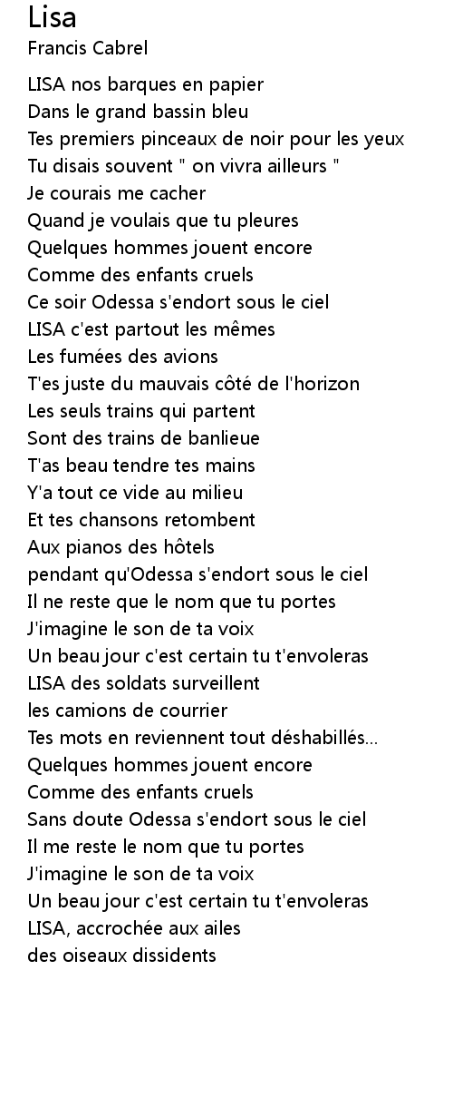 | 歌手 | Francis Cabrel |