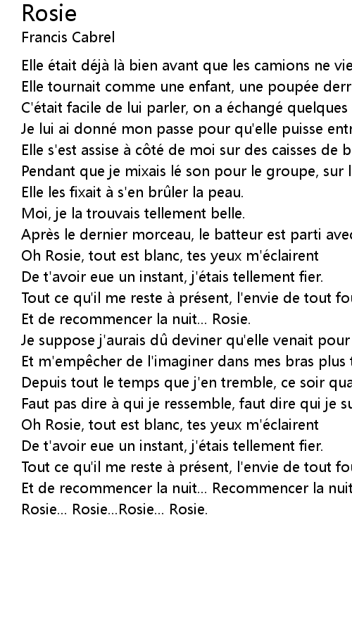 | Oh Rosie, tout est blanc, tes yeux m'e clairent | |