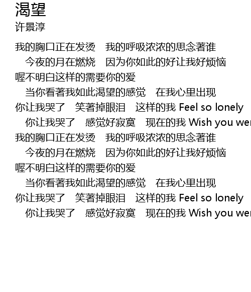 | [01:35.18] | 你让我哭了 感觉好寂寞 现在的我 Wish you were here |