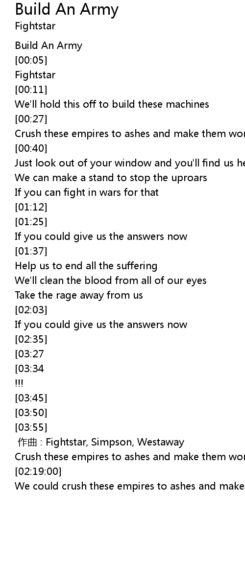 | [00:00.00] | 作曲 : Fightstar, Simpson, Westaway |