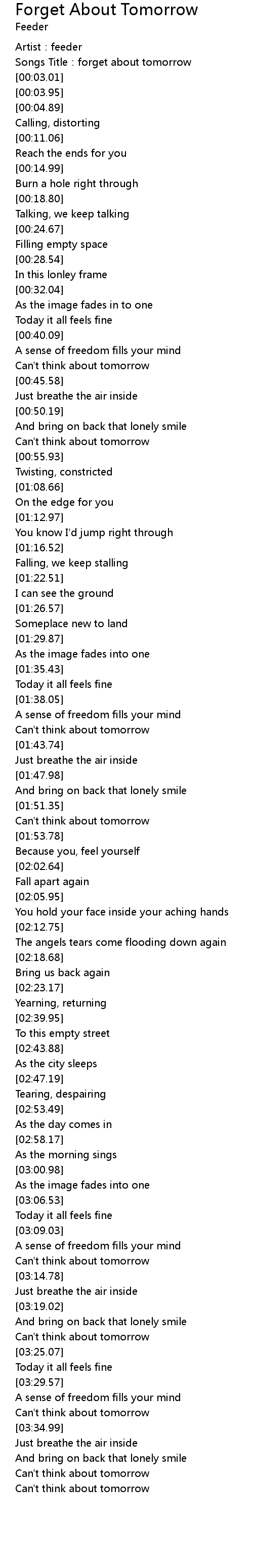 | [00:02.02] | Songs Title: forget about tomorrow |
