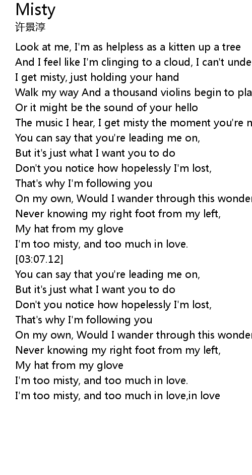 | [00:46.33] | I get misty, just holding your hand |