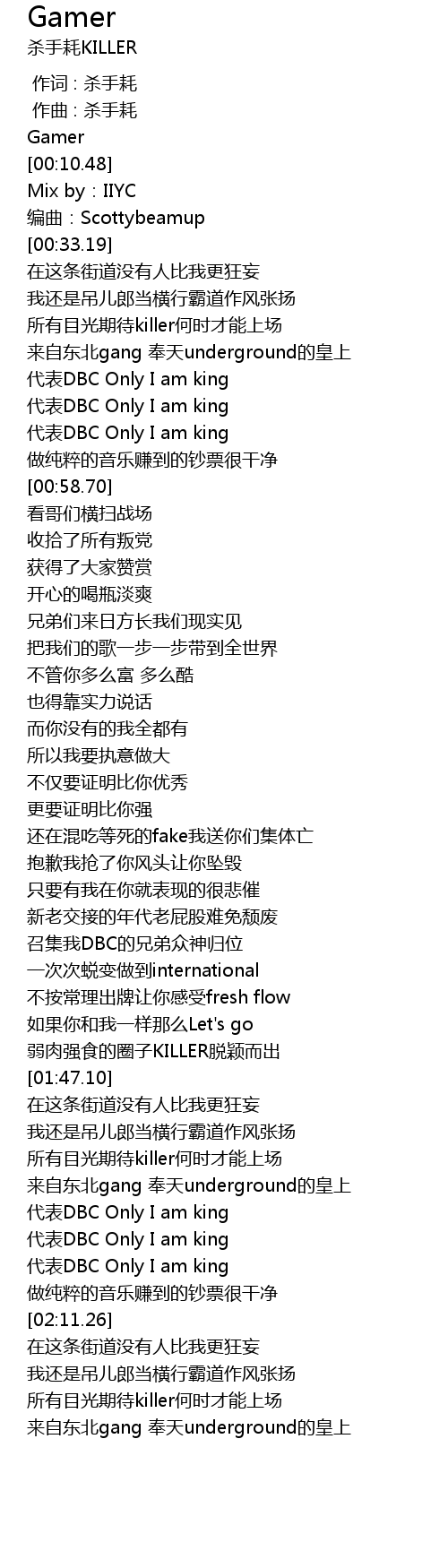 | [01:44.88] | 弱肉强食的圈子KILLER脱颖而出 |