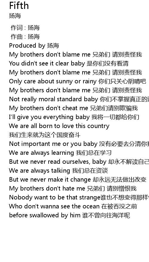 | [00:43.917] | My brothers don't blame me 兄弟们 请别责怪我 |