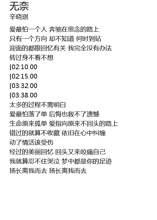 | [03:44.00][03:32.00][02:21.00][01:12.00] | wo ying gai wu nai ai yi ran cun zai |