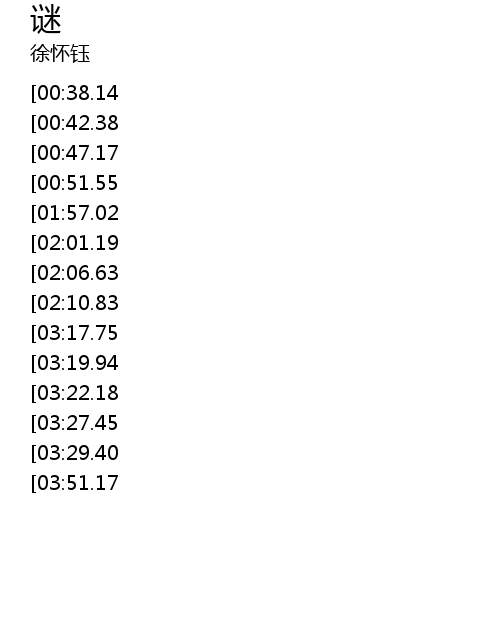 | [03:56.78][03:51.17][03:31.88][02:31.77][01:31.99] | 谁来解开这爱的谜 |