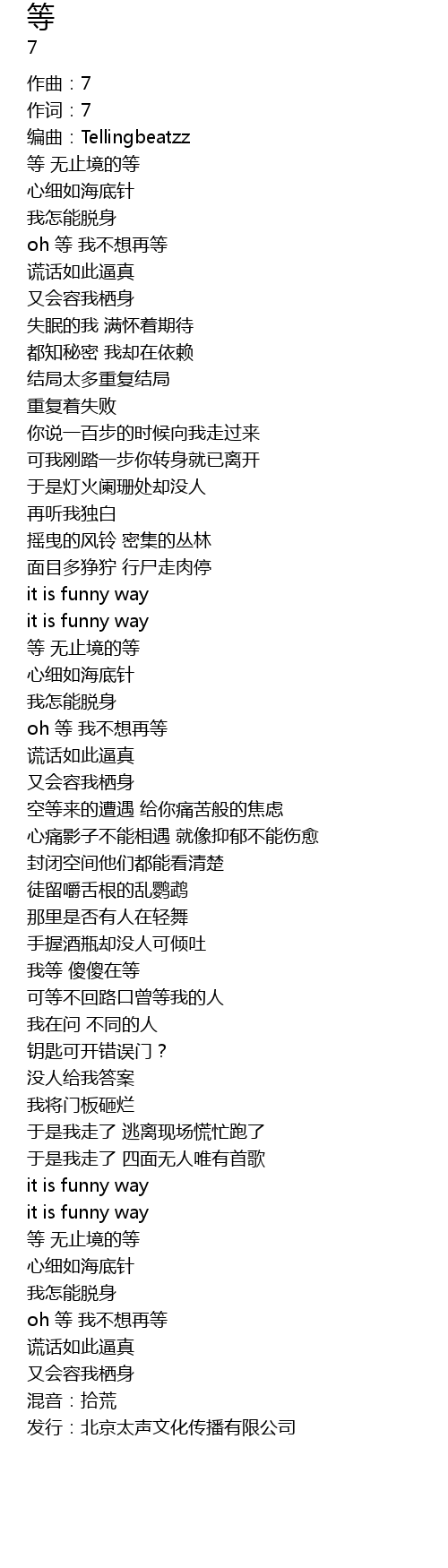 | [04:09.82] | 发行:北京太声文化传播有限公司 |