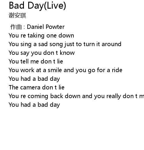 | 歌曲 | Bad Day(Live) |