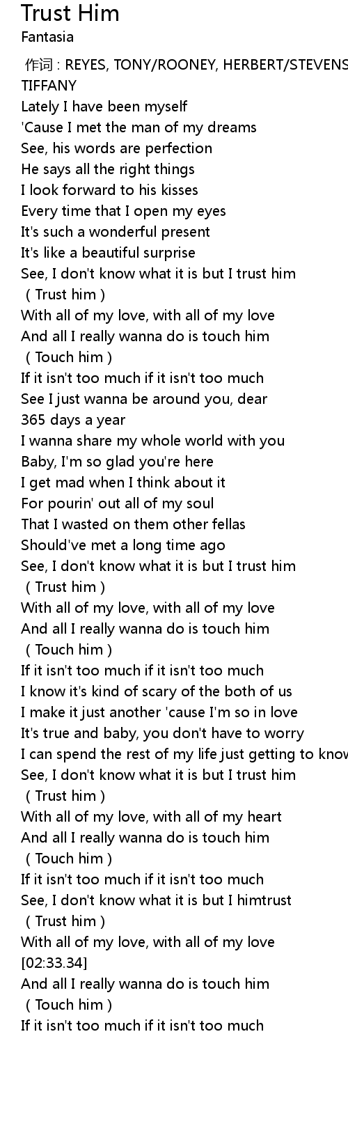 | [00:44.00] | See, I don' t know what it is but I trust him |