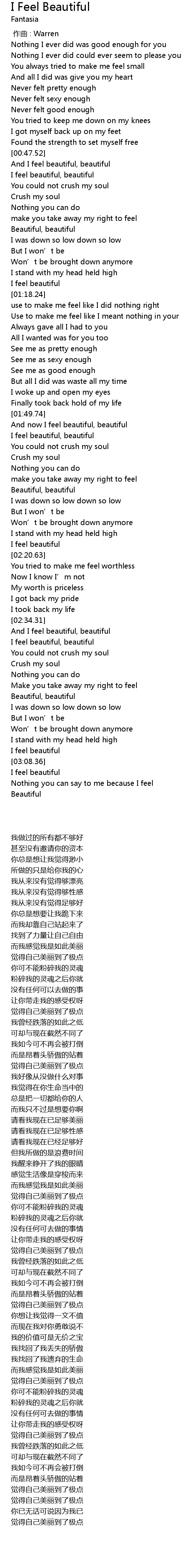 | [01:50.46] | And now I feel beautiful, beautiful |