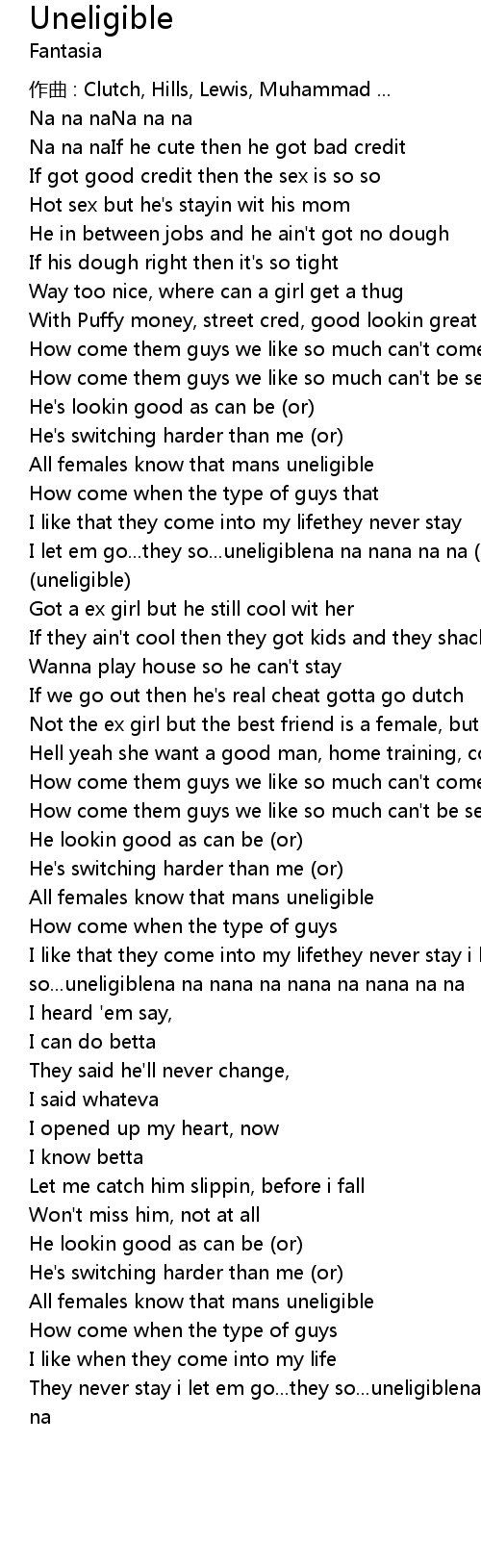 | I let em go... they so... uneligiblena na nana na na uneligible na na na uneligible | |