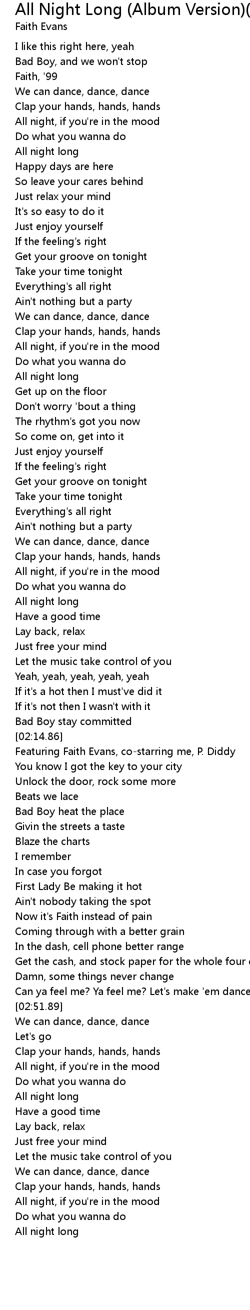 Featuring Faith Evans, co-starring me, P. Diddy |