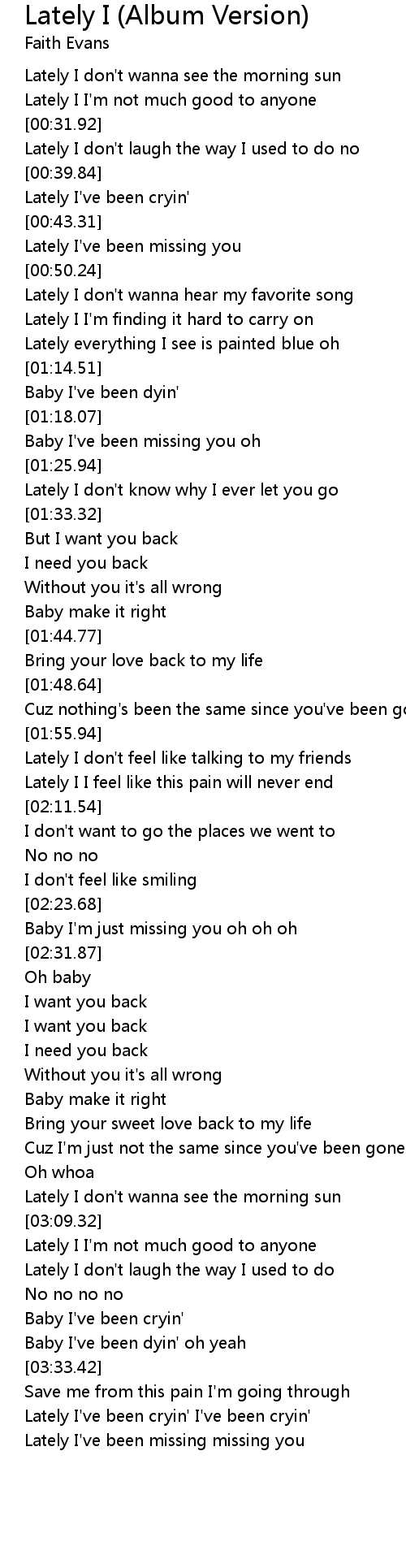Lately I've been missing you |