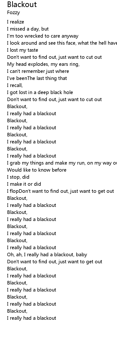 | Oh, ah, I really had a blackout, baby | |