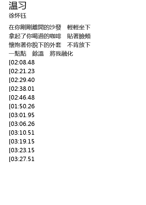 | [01:21.50][02:46.48] | 溫習著一字一句 你說的 情 話 |