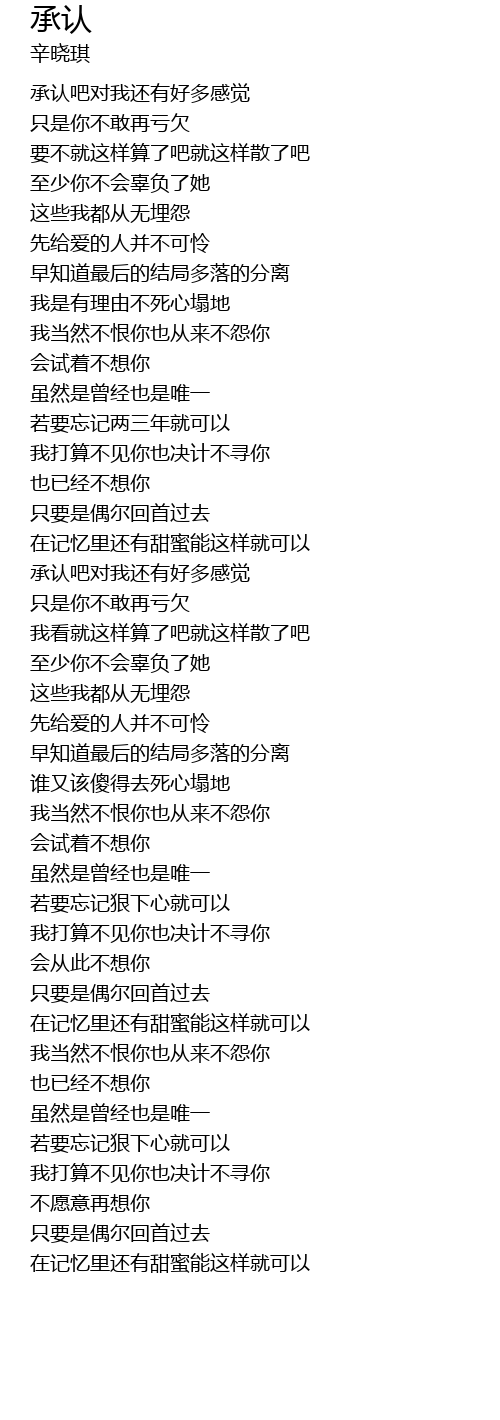 | [00:47.0] | 承认吧对我还有好多感觉 |