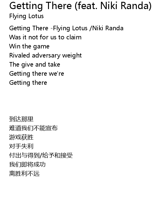 | [00:00.00] | Getting There -Flying Lotus /Niki Randa |