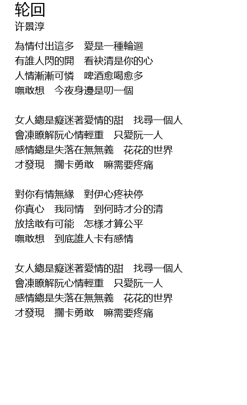 | 為情付出這多 愛是一種輪迴 | |