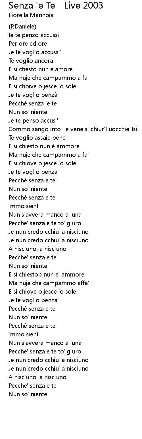 | 歌曲 | Senza 'e Te - Live 2003 |
