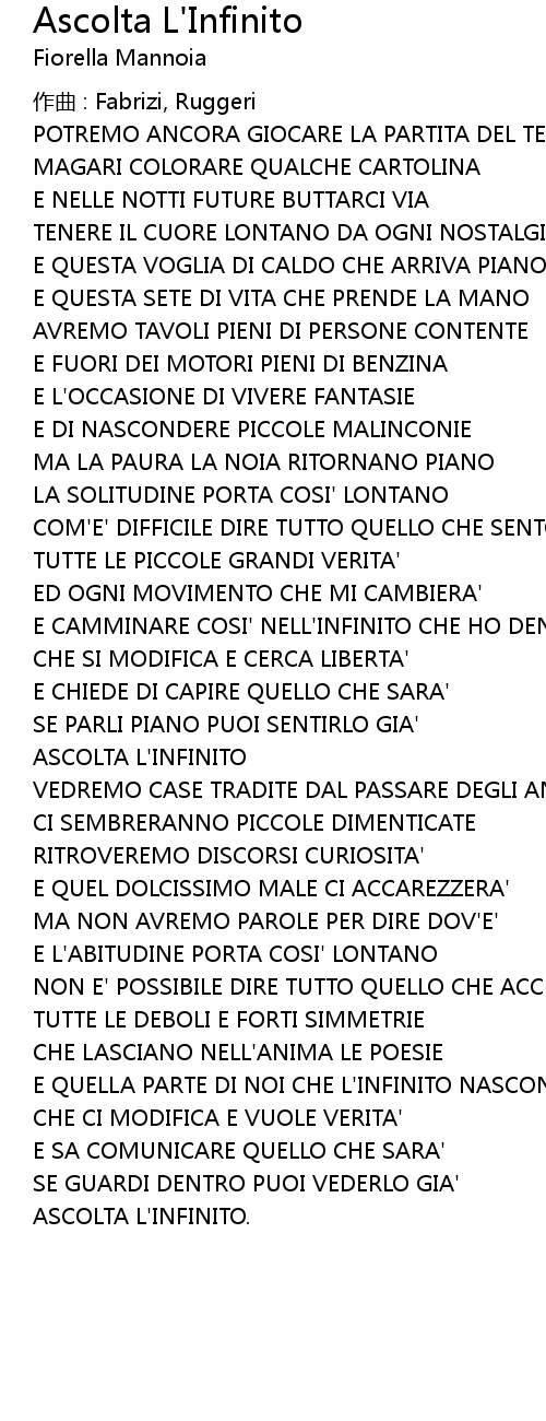 | 歌曲 | Ascolta L'Infinito |