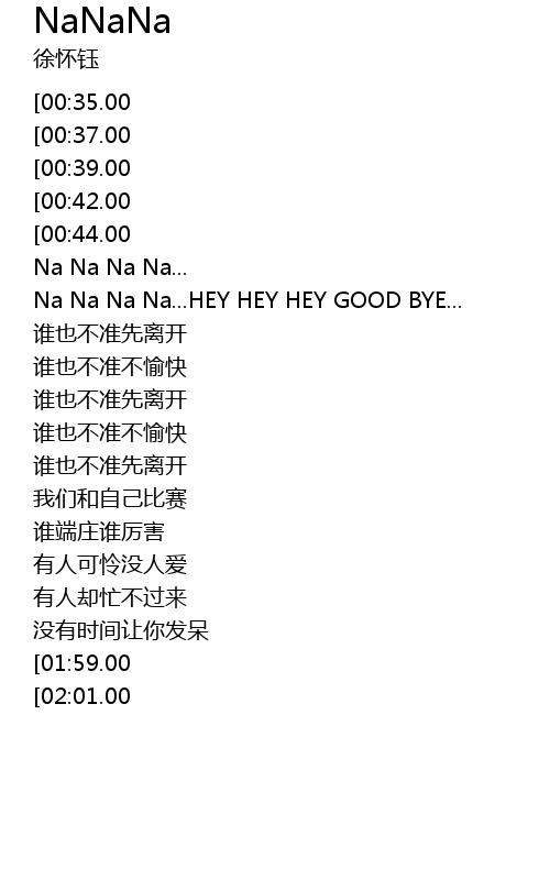 | [02:56.00][02:01.00] | Na Na Na Na... HEY HEY HEY GOOD BYE... |