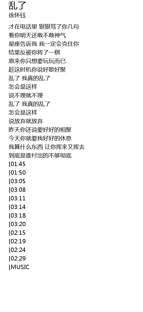 | [03:33][03:14][02:05] | 乱了 我真的乱了 |