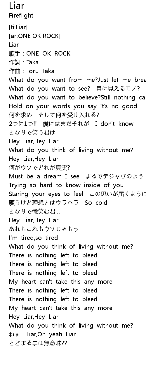| [02:51.642] | ねぇ Liar,Oh yeah Liar |