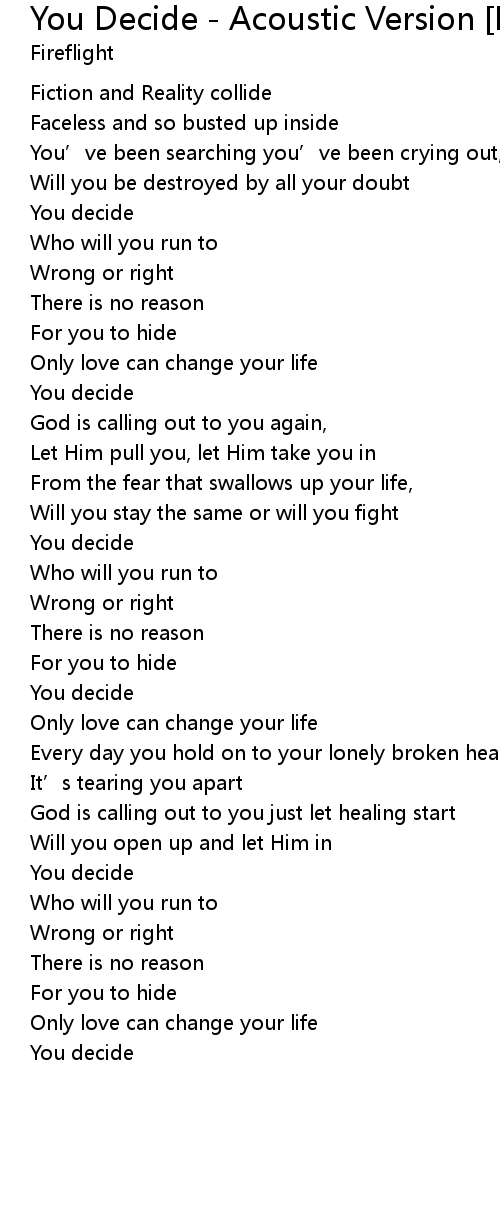 | 歌曲 | You Decide - Acoustic Version [Bonus Track] |