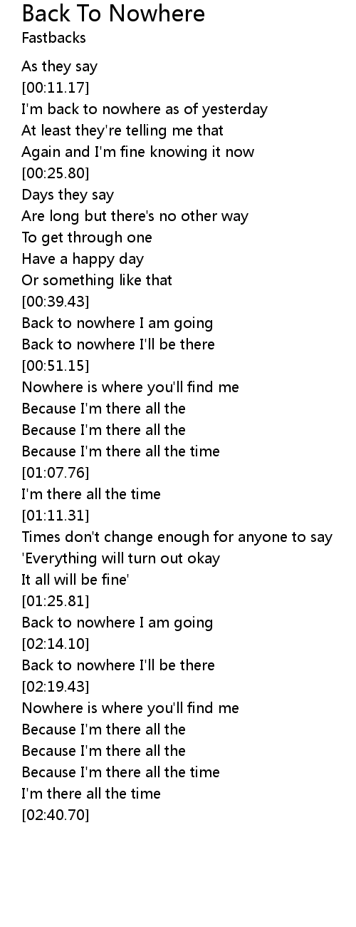 Back To Nowhere 歌词