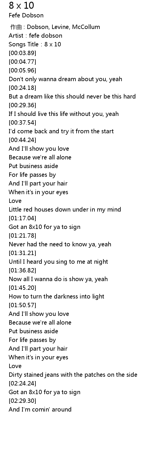 | [00:00.00] | zuo qu : Dobson, Levine, McCollum |