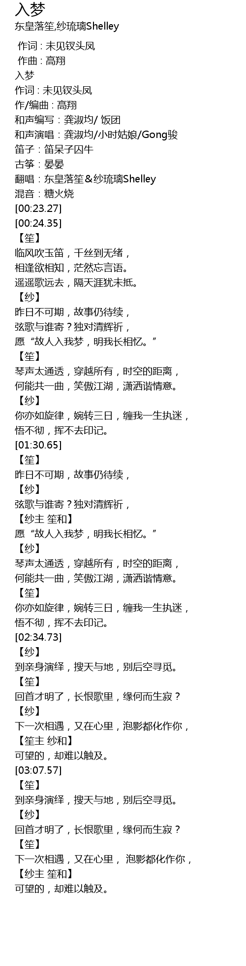 | [00:19.360] | 翻唱:东皇落笙&纱琉璃Shelley |