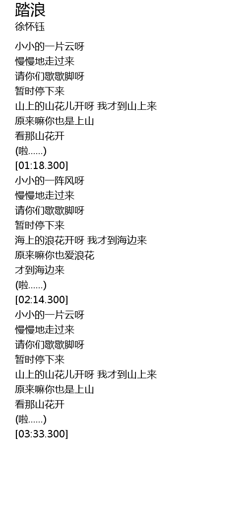 | [01:46.300] | 海上的浪花开呀 我才到海边来 |
