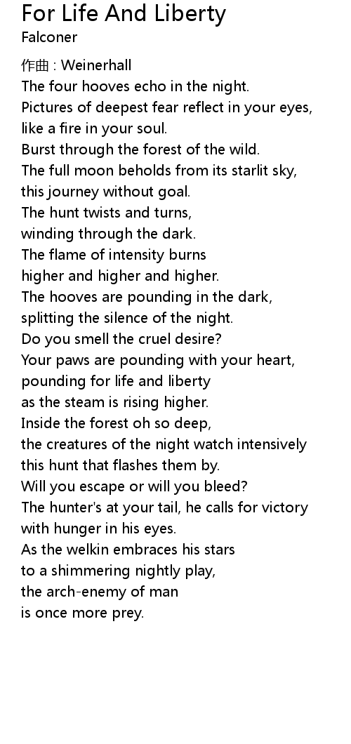 | 歌曲 | For Life And Liberty |