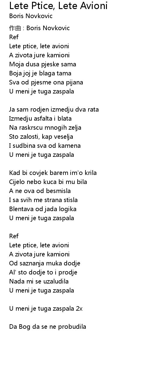 | 歌曲 | Lete Ptice, Lete Avioni |