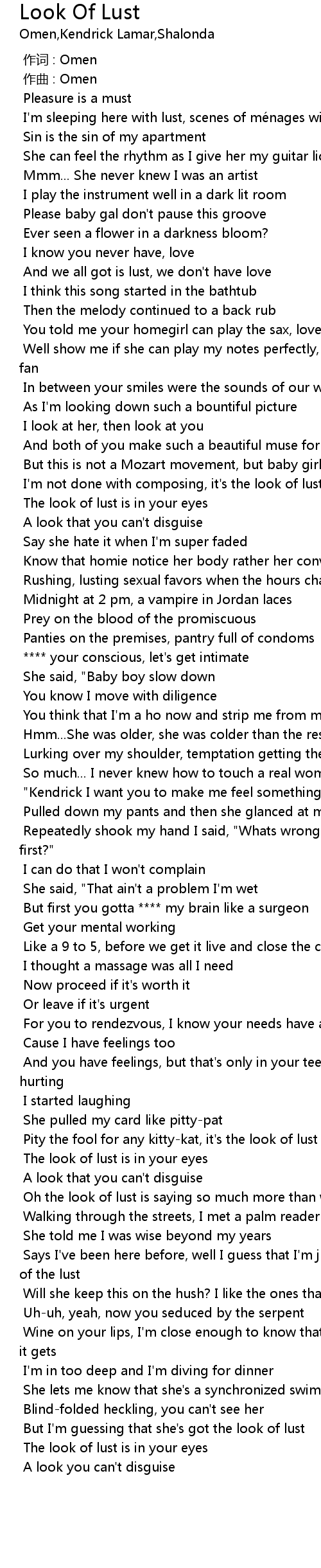 | [01:14.706] | I' m not done with composing, it' s the look of lust |